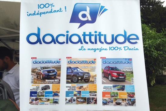 Un punct de reper al întregului eveniment este standul revistei Daciattitude, despre care Automarket a scris încă de la lansare. Este vorba de o publicaţie franceză dedicată 100% mărcii Dacia şi care este scrisă şi editată de fani ai mărcii, nu de oficialii ei. O revistă independentă care se vinde la chioşcurile de ziare din Hexagon, apare o dată la două luni şi costă 4 euro.
