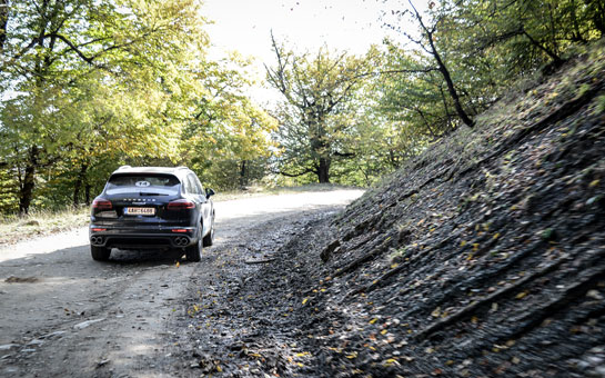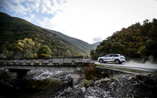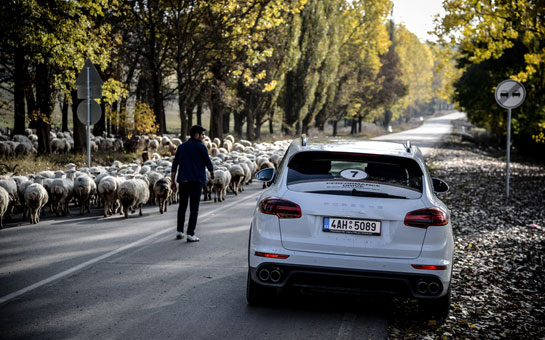 A urmat apoi o probă de macadam, pe care am reuşit să o parcurgem excelent, cu emoţii la fiecare curbă în care nu am călcat frâna pentru a nu încetini coborârea. Au fost gropi şi şleauri cum rar îţi este dat să vezi. Toate înghiţite fără a crâcni de către mastodontul de două tone. Am avut apoi de înfruntat turme nesfârşite de oi şi cirezi de vaci. Una chiar a salutat cu o copită maşina noastră. Cu un claxon care, miraculos, nu s-a ars, şi cu ajutorul ciobanilor, ne-am strecurat.