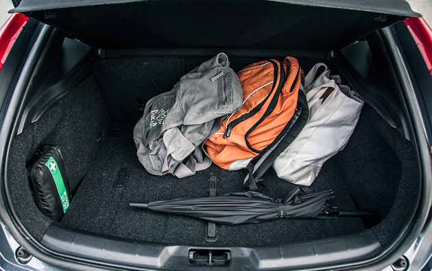 Pe cifre, V40 stă slab în segment. Cu 335 de litri destinaţi bagajelor, este ultimul în clasamentul hatchback-urilor premium compacte cu cinci uşi (şi nu numai, pentru că şi cele de volum stau în general mai bine), cel mai voluminoc adversar fiind noul A3 Sportback, cu 380 de litri. Pe partea pozitivă, portbagajul maşinii noastre are un nivel adiţional sub podeaua falsă, acolo intrând fără probleme lucruri pe care nu le utilizezi zilnic. Cum ar fi periile sau lopata de zăpada. Sub acest nivel se află roata de rezervă temporară şi kitul de defacere cu cric şi coarbă.