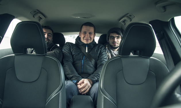 Cel mai corect ar fi să spunem că V40 este o maşină în care stau confortabil patru pasageri, chiar dacă numărul centurilor este de cinci. La nevoie, pe distanţe foarte scurte, maşina poate duce cinci persoane, însă nu vă aşteptaţi ca acestea să aprecieze condiţiile în care stau în acest timp. Paradoxul este că spaţiul vertical este ok, dar cel lateral lasă de dorit. Aşa cum se poate vedea şi în fotografia de mai sus, în care ne-am abţinut cu greu să izbucnim în râs.