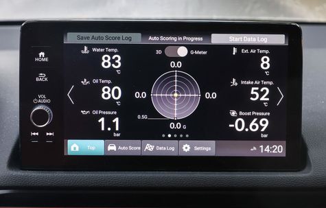 Ai și un meniu special, disponibil doar pe versiunea de performanță, care îți arată tot felul de parametri dinamici, inclusiv forțele G care acționează asupra mașinii.