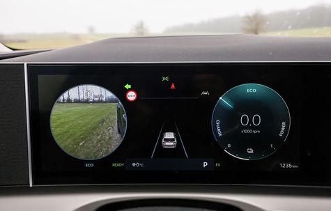 Sistemul multimedia se află în același ansamblu curbat cu instrumentarul de bord și are și el 12.3 inch. Sistemul se mișcă foarte bine, are o grafică bună și meniul este foarte ușor de înțeles. Lucrurile sunt destul de clare cu acest sistem și te obișnuiești cu el foarte repede.