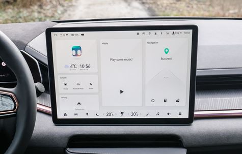 Display-ul central are o diagonală de 15 inch și aceeași grafică de calitate. Am spus deja că din meniul sistemului multimedia controlezi toate funcțiile mașinii. Din fericire, sistemul răspunde rapid la comenzi și înțelege aceleași gesturi ca și telefonul tău mobil.